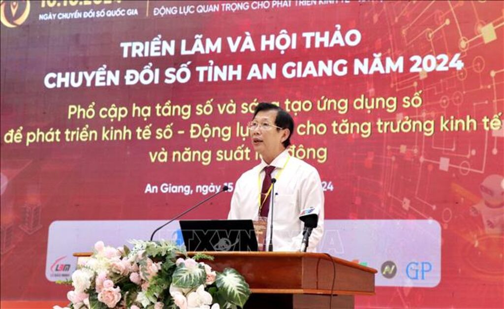 Ngày 15/10, UBND tỉnh An Giang tổ chức Hội thảo chuyển đổi số năm 2024 với chủ đề “Phổ cập hạ tầng số và sáng tạo ứng dụng số để phát triển kinh tế số, động lực mới cho tăng trưởng kinh tế và năng suất lao động”.