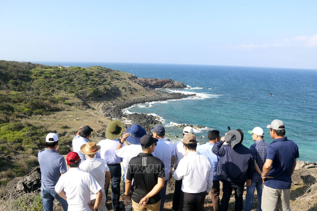 Đoàn công tác đã khảo sát nhiều điểm đến tiêu biểu còn giữ được nét hoang sơ với các bãi tắm đẹp và di tích nổi tiếng trên đảo như: Cột cờ chủ quyền - Bãi Nhỏ - Gành Hang; chùa Linh Sơn - núi Cao Cát; quần thể Mộ Thầy; Hòn Tranh; khu vực lồng bè nuôi trồng thủy sản... Đoàn cũng nghe báo cáo về định hướng phát triển không gian du lịch tại các điểm đến trong thời gian tới.