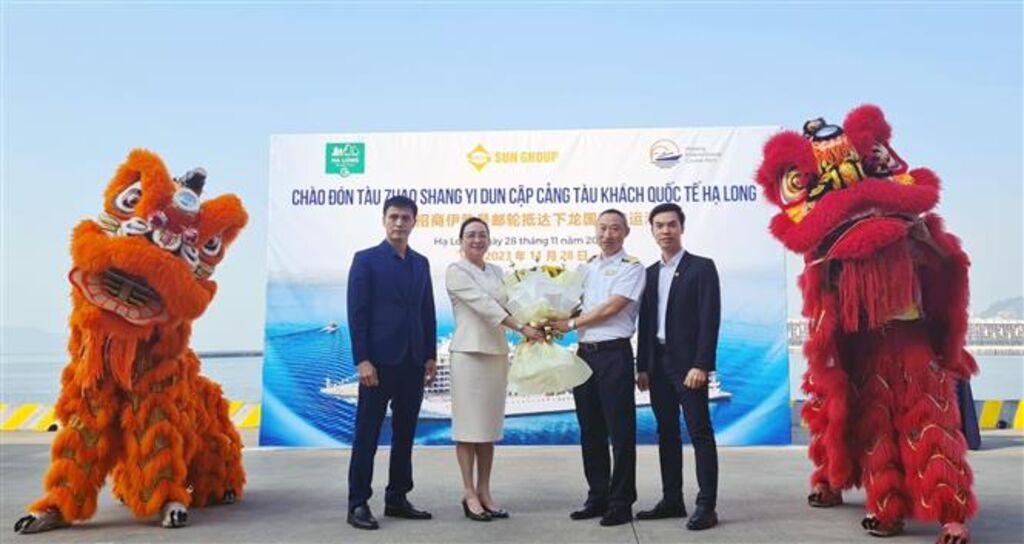 Cập cảng lúc 7 giờ 30 phút ngày 28/11, những hành khách đến từ Xà Khẩu (Quảng Đông, Trung Quốc) trên tàu Zhao Shang Yi Dun được Cảng tàu khách quốc tế Hạ Long chào đón bằng hoa tươi và màn trình diễn múa lân, sư, rồng rộn ràng.