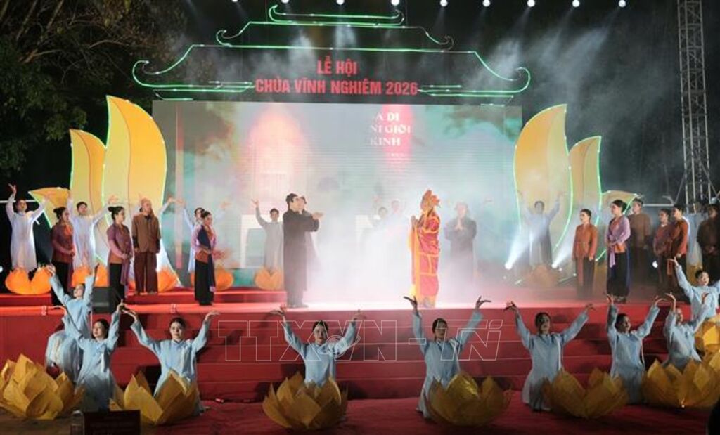 Sau phần lễ, đại biểu và du khách thưởng thức chương trình nghệ thuật với chủ đề “Vĩnh Nghiêm đất thiêng tỏa sáng” gồm 3 chương: Về cõi Phật, Người con nơi chốn Tổ và Tân An tầm cao mới; với sự thể hiện của các ca sĩ Tùng Dương, Anh Thơ, Nam Anh, Minh Hằng cùng các ca sĩ, nghệ sĩ. Chương trình nhằm tái hiện chiều sâu lịch sử, giá trị tâm linh của chốn Tổ Phật giáo Trúc Lâm; đồng thời tôn vinh truyền thống văn hóa đặc sắc của vùng đất Tân An, khắc họa khát vọng phát triển, đổi mới của địa phương trong giai đoạn mới./.