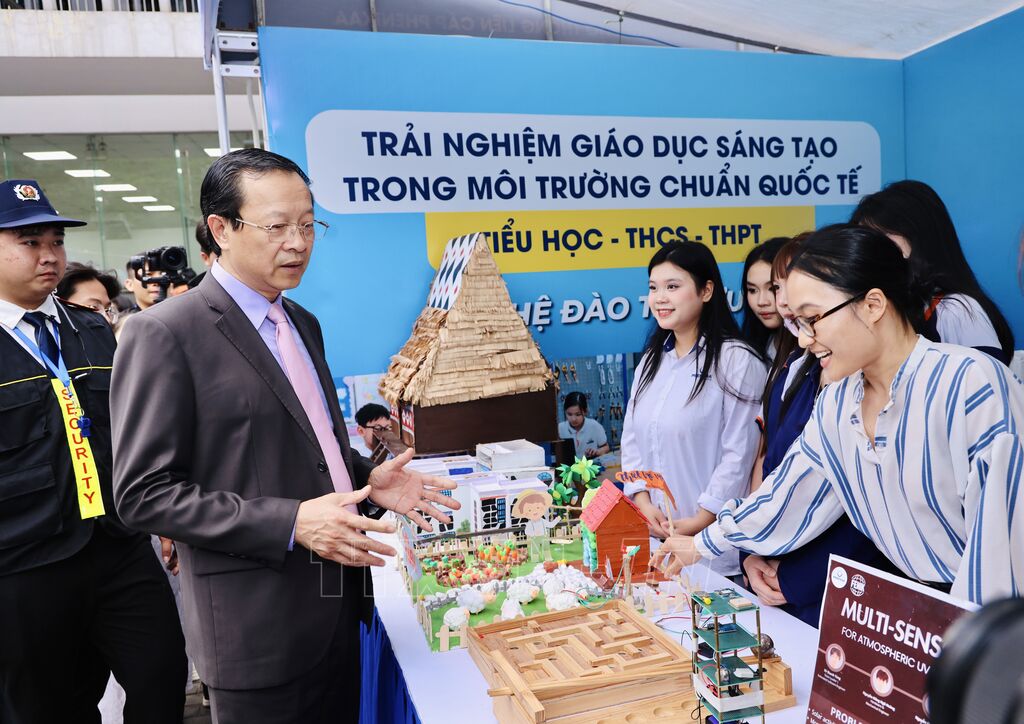 Về phía Bộ Giáo dục và Đào tạo, Thứ trưởng Bộ Giáo dục và Đào tạo Phạm Ngọc Thưởng chia sẻ, toàn ngành Giáo dục đang hướng tới mục tiêu giáo dục toàn diện về Đức, Trí, Thể, Mỹ và kịp thời nắm bắt xu hướng của thế giới, đột phá về khoa học, công nghệ, đổi mới sáng tạo. Đặc biệt, từ khi Nghị quyết số 57-NQ/TW, ngày 22/12/2024 của Bộ Chính trị về "đột phá phát triển khoa học, công nghệ, đổi mới sáng tạo và chuyển đổi số quốc gia" được ban hành, các cấp quản lý từ Trung ương đến địa phương, các đơn vị, nhà trường càng tích cực quan tâm để cho học sinh phổ thông sớm tham gia vào các hoạt động khởi nghiệp và làm quen với phương pháp nghiên cứu khoa học.
