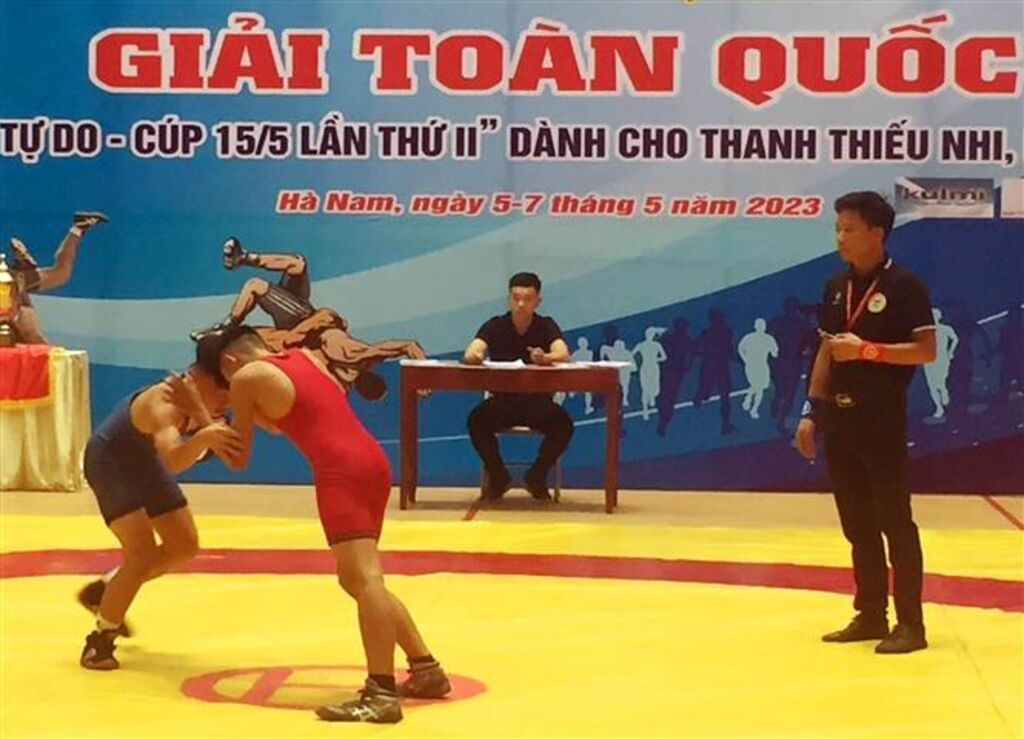TTXVN - Ngày 6/5, tại Nhà thi đấu Thể dục thể thao tỉnh Hà Nam, Sở Văn hóa và Thể thao tỉnh phối hợp với Liên đoàn Vật Việt Nam đã tổ chức khai mạc “Vật tự do - Cúp 15/5 lần thứ II” dành cho thanh thiếu nhi năm 2023. Đây là một trong nhiều hoạt động nằm trong khuôn khổ chương trình Tuần Văn hóa – Du lịch Hà Nam năm 2023.