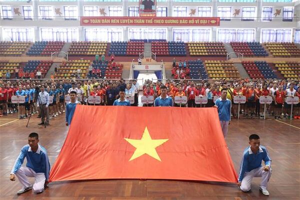 TTXVN - Tối 6/6, tại Nhà thi đấu thể thao Trà Vinh, Liên đoàn Bóng chuyền Việt Nam (Tổng cục Thể dục, thể thao) phối hợp với Sở Văn hóa, Thể thao và Du lịch tỉnh tổ chức khai mạc Giải Vô địch Bóng chuyền trẻ quốc gia năm 2023.