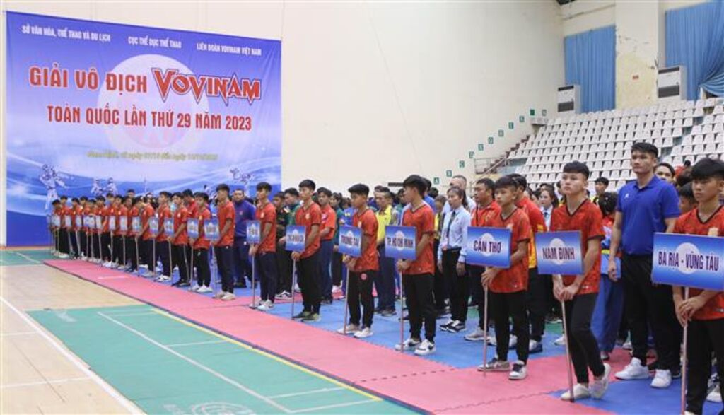 TTXVN - Tối 10/10, tại tỉnh Nam Định, Cục Thể dục thể thao (Bộ Văn hóa, Thể thao và Du lịch) phối hợp với Liên đoàn Vovinam Việt Nam và Sở Văn hóa, Thể thao và Du lịch tỉnh Nam Định tổ chức khai mạc Giải Vô địch Vovinam toàn quốc năm 2023.