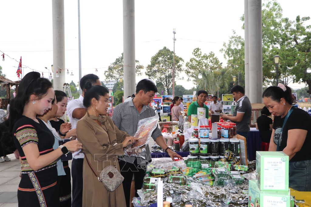 Điểm nhấn thu hút đông đảo khách tham quan là khu vực trưng bày với 20 gian hàng sản phẩm OCOP tiêu biểu. Đây là những sản phẩm đặc trưng, kết tinh từ đôi bàn tay tài hoa và tinh thần lao động sáng tạo của người dân địa phương, góp phần quảng bá thương hiệu và thúc đẩy kinh tế bền vững cho tỉnh nhà.