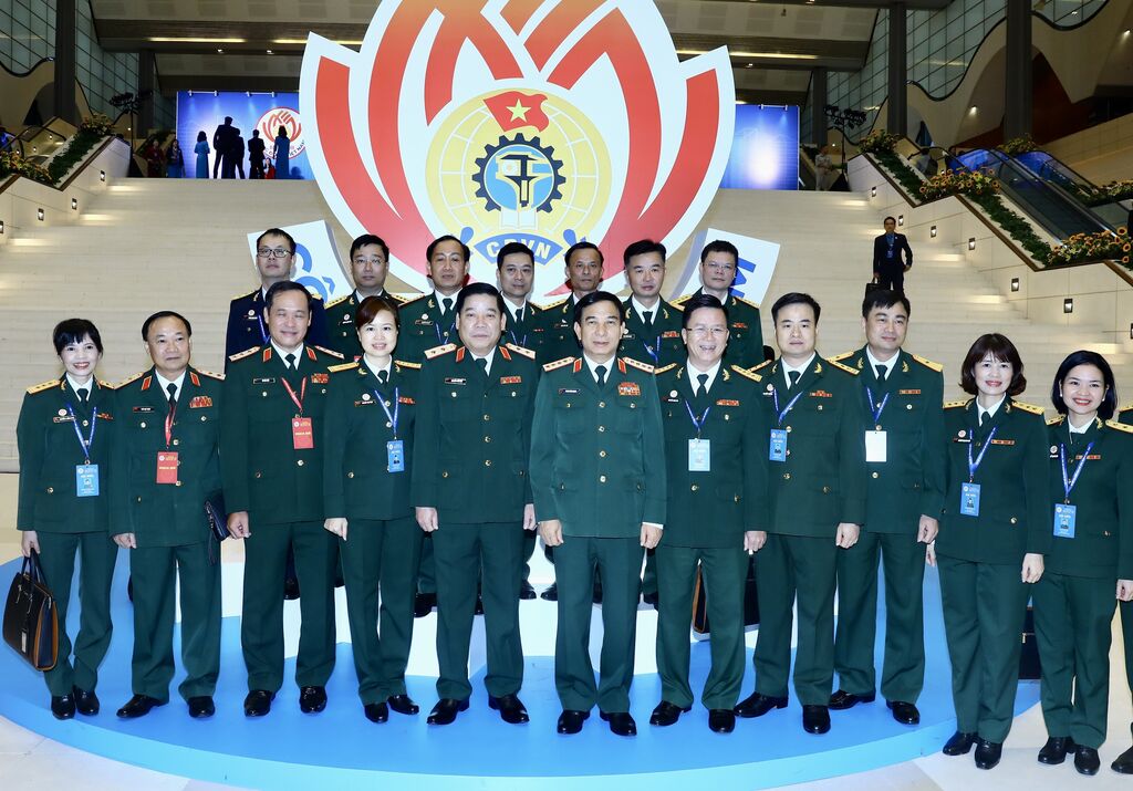 Đại tướng Phan Văn Giang, Ủy viên Bộ Chính trị, Bộ trưởng Bộ Quốc phòng và đại biểu quân đội dự Phiên trọng thể Đại hội Công đoàn Việt Nam khóa XIII. Ảnh: Lâm Khánh - TTXVN
