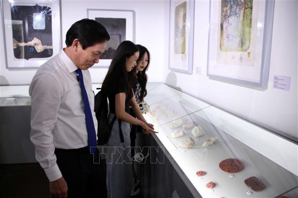 Không gian trưng bày 38 hiện vật và 113 tư liệu là những tác phẩm tranh, tượng, thảm, sách, tư liệu, dụng cụ tạo tác … bằng nhiều chất liệu khác nhau với chủ đề, nội dung phong phú về cảnh đẹp thiên nhiên, về con người và văn hóa Việt Nam.