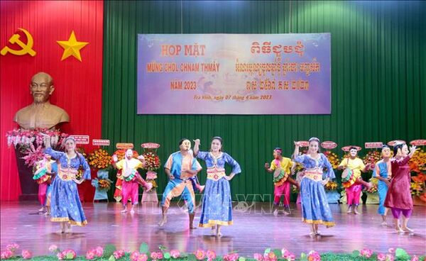TTXVN - Tối 7/4, tại Trà Vinh, Ban Tuyên giáo Trung ương, Hội Nghệ sĩ Sân khấu Việt Nam phối hợp với Ủy ban nhân dân tỉnh Trà Vinh, Sở Văn hóa, Thể thao và Du lịch tỉnh tổ chức bế mạc Liên hoan Nghệ thuật sân khấu Dù kê Khmer Nam Bộ lần thứ II - năm 2023.