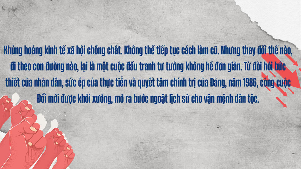 Từ đòi hỏi bức thiết của nhân dân, sức ép của thực tiễn và quyết tâm chính trị của Đảng, năm 1986, công cuộc Đổi mới được khởi xướng, mở ra bước ngoặt lịch sử cho vận mệnh dân tộc.
