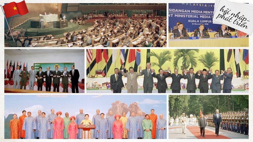 Bước sang thập niên 1990, dấu mốc mang tầm vóc lịch sử là quyết định gia nhập ASEAN năm 1995. Đó không chỉ là một bước đi đối ngoại, mà là lựa chọn chiến lược chủ động, bản lĩnh, đặt Việt Nam vào dòng chảy hợp tác khu vực và toàn cầu. Từ đây, cánh cửa hội nhập đã được mở rộng với việc bình thường hóa quan hệ với Hoa Kỳ, gia nhập WTO, ký kết các hiệp định thương mại tự do thế hệ mới như CPTPP, EVFTA, RCEP.