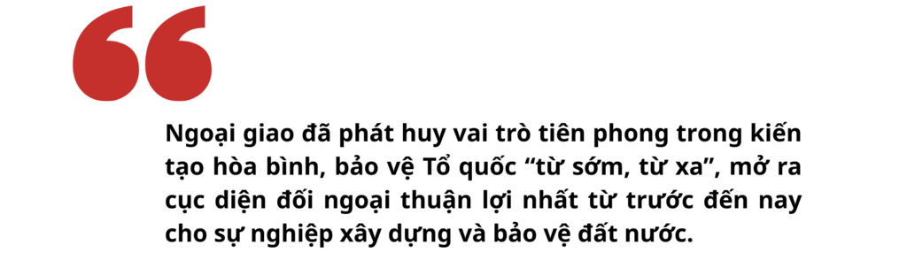 Bốn thập niên Đổi mới, sau những năm tháng bị bao vây, cấm vận là vị thế quốc tế chưa từng có, từ nền kinh tế khó khăn thời bao cấp là nền kinh tế có giá trị hơn nửa nghìn tỷ USD. Có thể thấy rõ làm nên hành trình đó có sự đóng góp quan trọng của một nền ngoại giao bản lĩnh và sáng tạo.