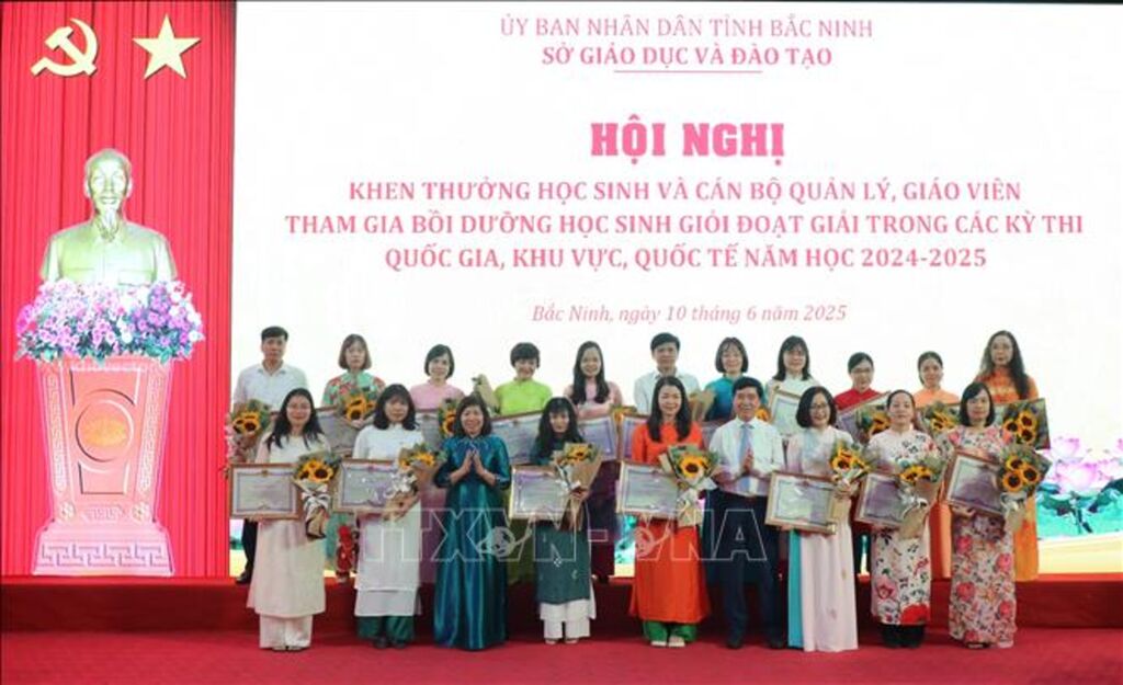 Chiều 10/6, tại Trường Trung học Phổ thông Chuyên Bắc Ninh, Sở Giáo dục và Đào tạo tỉnh Bắc Ninh tổ chức hội nghị khen thưởng học sinh và cán bộ quản lý, giáo viên tham gia bồi dưỡng học sinh giỏi đạt giải trong các Kỳ thi Quốc gia, khu vực và quốc tế năm học 2024 - 2025.
