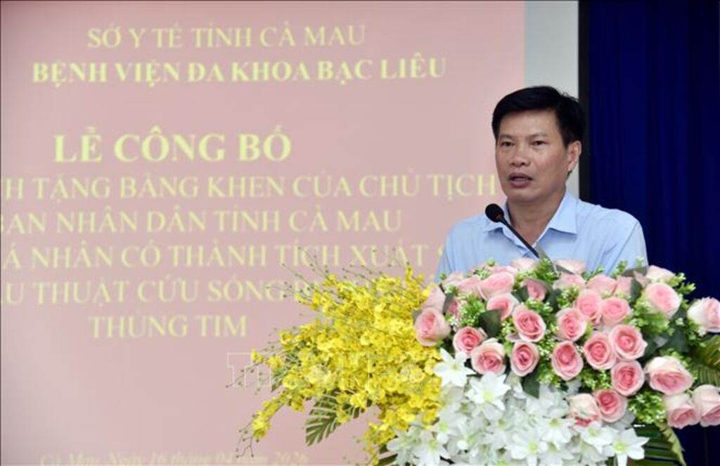 Chiều 16/4, tại Bệnh viện Đa khoa Bạc Liêu (tỉnh Cà Mau) đã tổ chức lễ công bố quyết định của Chủ tịch UBND tỉnh về việc tặng Bằng khen đột xuất cho các cá nhân có thành tích xuất sắc trong ca phẫu thuật cứu sống bệnh nhân bị thủng tim.