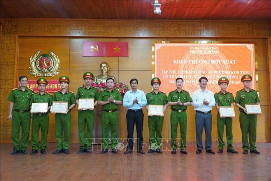 Tại buổi khen thưởng, Ủy ban nhân dân phường đã tặng Giấy khen cho Tổ Cảnh sát phòng, chống tội phạm và 5 cá nhân đang công tác tại Công an phường Kon Tum.