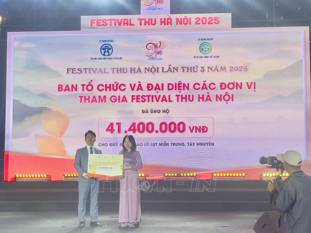 Ban Tổ chức chương trình và các đơn vị đồng hành đã phát động quyên góp ủng hộ đồng bào các tỉnh miền Trung và Tây Nguyên bị thiệt hại do thiên tai. Hoạt động này không chỉ thể hiện truyền thống tương thân tương ái của người Hà Nội mà còn lan tỏa giá trị nhân văn sâu sắc, góp phần làm nên ý nghĩa thiết thực cho Festival Thu Hà Nội lần thứ 3.