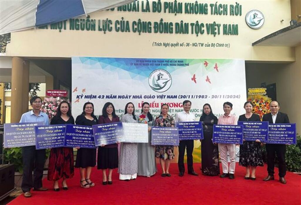 Tại sự kiện, Ủy ban về Người Việt Nam ở nước ngoài Thành phố Hồ Chí Minh phối hợp cùng gia đình Tiến sĩ Võ Tá Hân (kiều bào Hoa Kỳ) trao tặng hơn 9.600 cuốn sách (trị giá khoảng 24 tỷ đồng) đến 33 trường đại học, cao đẳng và thư viện khu vực miền Nam, Tây Nguyên. Đây là một phần trong 14.219 cuốn sách (tổng trị giá 34 tỷ đồng) chuyên ngành khoa học kỹ thuật của Nhà xuất bản World Scientific (Singapore) được Tiến sĩ Võ Tá Hân tài trợ trong năm 2024./.