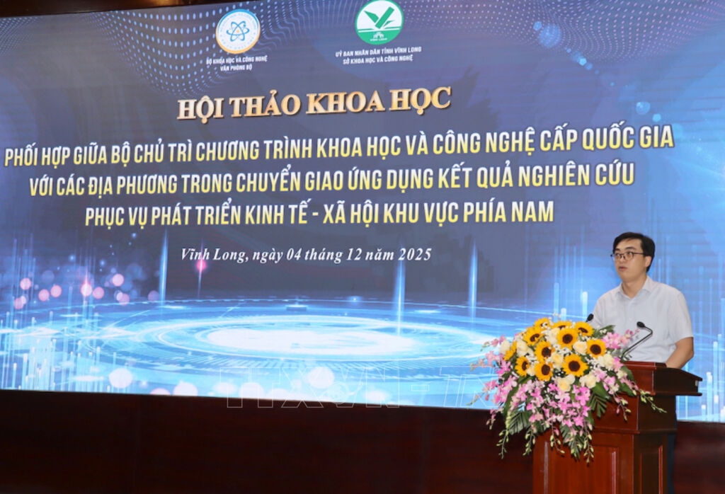 Khai mạc hội thảo, ông Đồng Hải Hà, Phó Chánh Văn phòng Bộ Khoa học và Công nghệ, Trưởng Đại diện Văn phòng Bộ tại miền Nam cho biết, những năm qua, các chương trình khoa học và công nghệ cấp quốc gia đã tạo ra nhiều kết quả nổi bật; góp phần quan trọng vào tăng trưởng kinh tế, năng lực cạnh tranh và đổi mới sáng tạo quốc gia. Theo đó, nhiều công nghệ, quy trình kỹ thuật, sản phẩm mới đã được ứng dụng trong nông nghiệp, công nghiệp chế biến, y dược, môi trường, năng lượng và chuyển đổi số. Tỷ lệ kết quả nghiên cứu được ứng dụng thực tế trong một số chương trình đạt từ 30 - 50% và nhiều nhiệm vụ đã trực tiếp giải quyết các yêu cầu cấp thiết của địa phương.