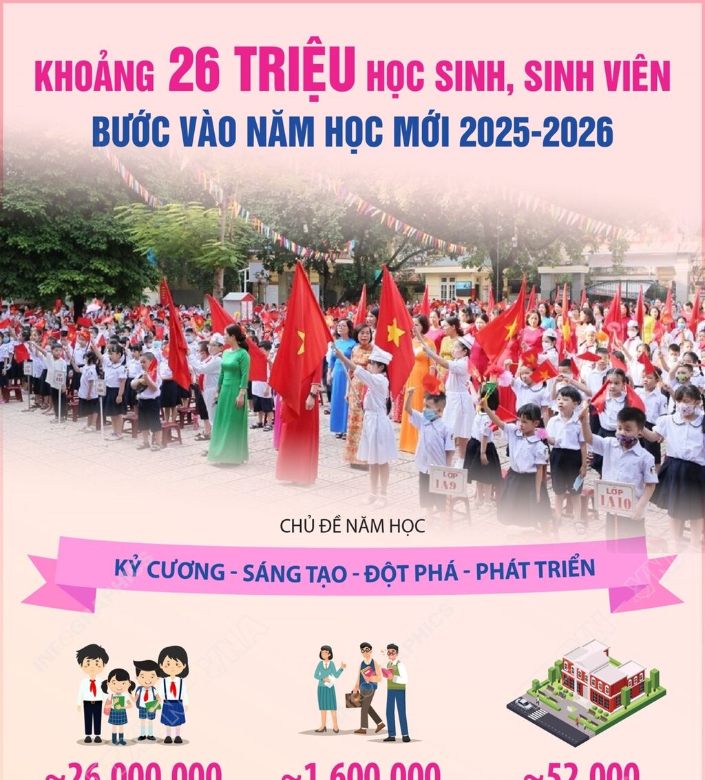 Ngày 5/9, khoảng 26 triệu học sinh, sinh viên các cấp học, cùng khoảng 1,6 triệu giáo viên trên cả nước bước vào năm học mới với lễ khai trường đặc biệt, kỳ vọng về một năm học với nhiều chính sách đột phá đối với giáo dục và đào tạo.