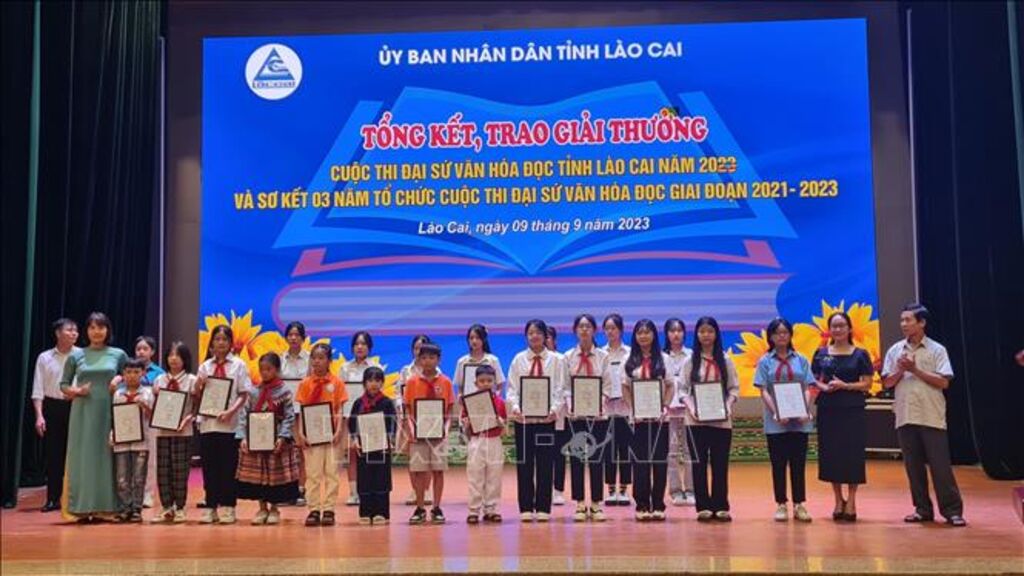 TTXVN-Chào mừng kỷ niệm 65 năm ngày Bác Hồ thăm Lào Cai (23/9/1958-23/9/2023), ngày 9/9, tại thành phố Lào Cai, UBND tỉnh Lào Cai đã tổ chức Lễ tổng kết, trao giải Cuộc thi Đại sứ Văn hóa đọc tỉnh Lào Cai năm 2023 và Sơ kết 3 năm tổ chức Cuộc thi Đại sứ Văn hóa đọc giai đoạn 2021 - 2023.
