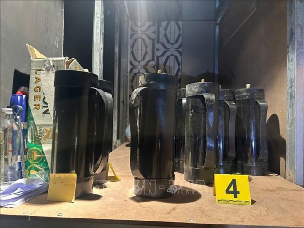Cơ quan Công an thu giữ nhiều tang vật thu giữ tại hiện trường gồm: 27 bình kim loại loại 3kg chứa khí N₂O, 10.250 quả bóng cao su đã và chưa sử dụng, nhiều máy móc khác liên quan.