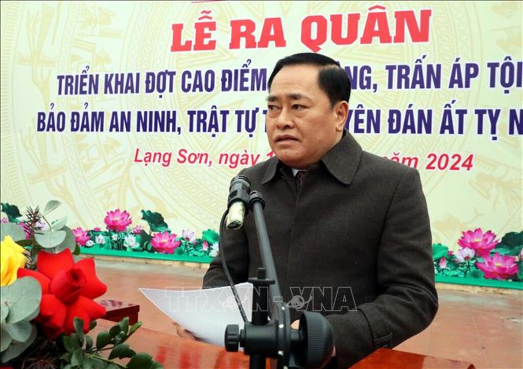 Phát biểu tại lễ ra quân, Chủ tịch UBND tỉnh Lạng Sơn Hồ Tiến Thiệu đề nghị Công an tỉnh chủ động nắm chắc tình hình và các chủ trương, chính sách mới từ phía nước ngoài, đặc biệt trong các lĩnh vực thương mại, biên mậu, xuất nhập khẩu hàng hóa để kịp thời tham mưu, đề xuất các giải pháp bảo đảm an ninh, trật tự, phục vụ phát triển kinh tế - xã hội và đối ngoại của tỉnh. Công an tỉnh phối hợp chặt chẽ với các sở, ban, ngành, tổ chức chính trị - xã hội thực hiện tốt công tác bảo vệ chính trị nội bộ, bảo vệ bí mật Nhà nước; bảo đảm an ninh thông tin, an ninh mạng.