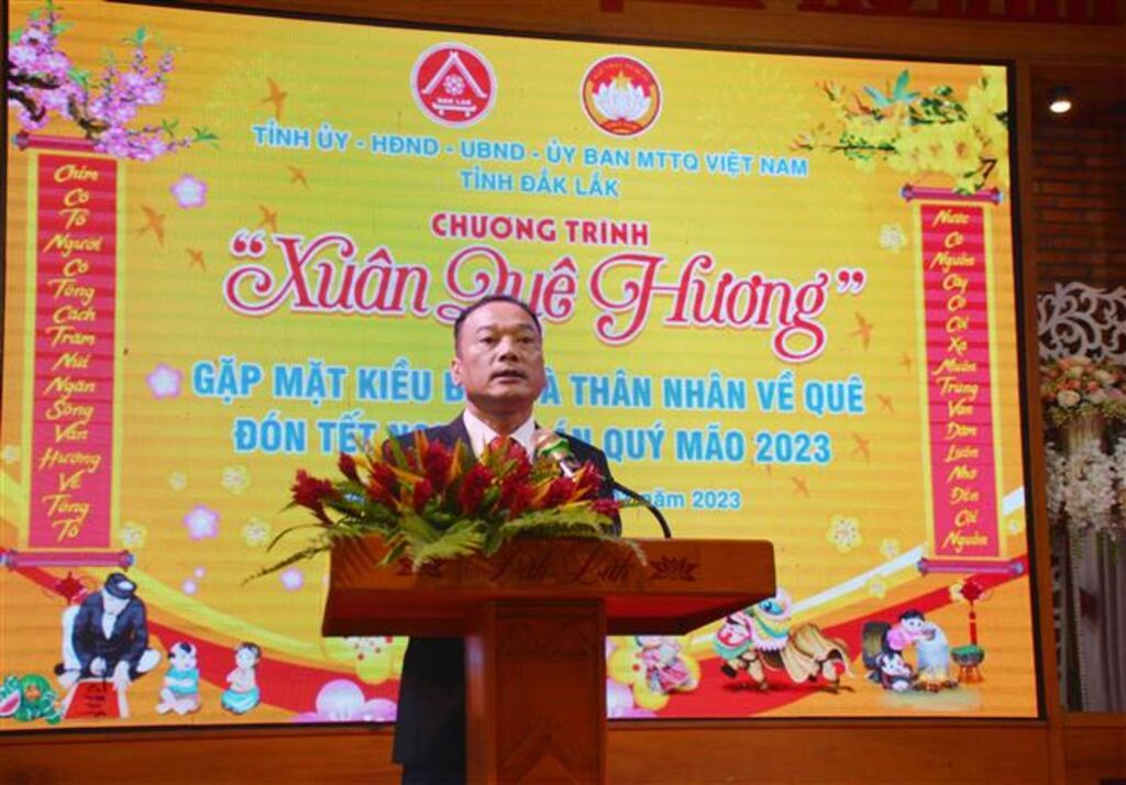 (TTXVN) Ngày 10/1, Ủy ban Mặt trận Tổ quốc Việt Nam tỉnh Đắk Lắk tổ chức Chương trình “Xuân quê hương” gặp mặt kiều bào và thân nhân kiều bào về quê đón Tết Nguyên đán Quý Mão 2023.