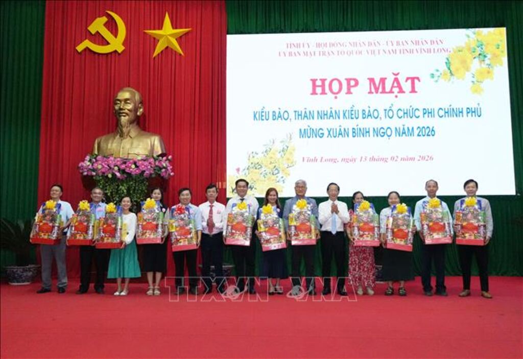 Ngày 13/2, Tỉnh ủy, Hội đồng nhân dân, Ủy ban nhân dân, Ủy ban Mặt trận Tổ quốc Việt Nam tỉnh Vĩnh Long tổ chức họp mặt kiều bào, thân nhân kiều bào và các tổ chức phi chính phủ mừng Xuân Bính Ngọ năm 2026.