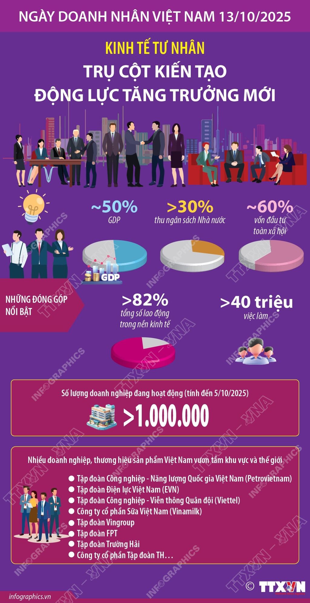 Cùng với tiến trình đổi mới của đất nước, khu vực kinh tế tư nhân đã và đang vươn mình phát triển lớn mạnh, khẳng định vai trò là động lực quan trọng của nền kinh tế. Thực tiễn gần bốn thập kỷ của công cuộc đổi mới (1986-2025), khu vực doanh nghiệp, đặc biệt là doanh nghiệp tư nhân, chính là trụ cột năng động của nền kinh tế.