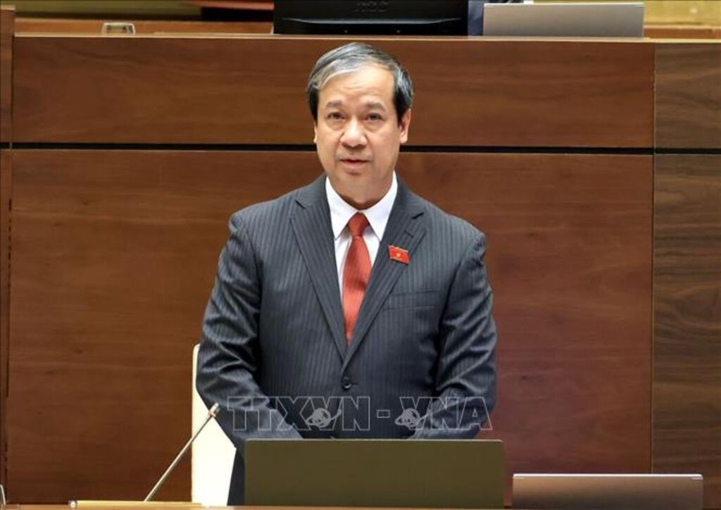 Chiều cùng ngày, sau khi các đại biểu phát biểu thảo luận, thay mặt đơn vị chủ trì soạn thảo, thừa ủy quyền của Chính phủ trình 3 dự thảo luật và 1 dự thảo Nghị quyết, Bộ trưởng Bộ Giáo dục và Đào tạo Nguyễn Kim Sơn tiếp thu, giải trình một số nội dung.