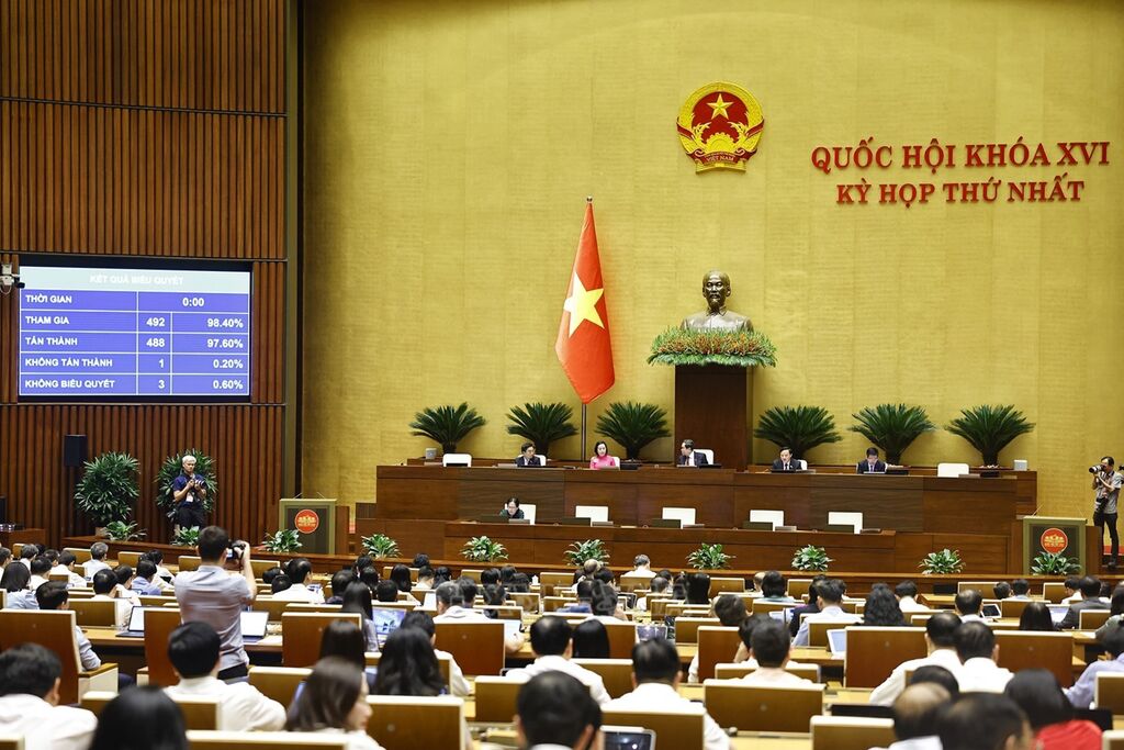 Tiếp tục chương trình Kỳ họp thứ Nhất, Quốc hội khóa XVI, chiều 23/4, Quốc hội biểu quyết thông qua Luật Hộ tịch (sửa đổi) với 488/492 đại biểu Quốc hội có mặt biểu quyết tán thành.