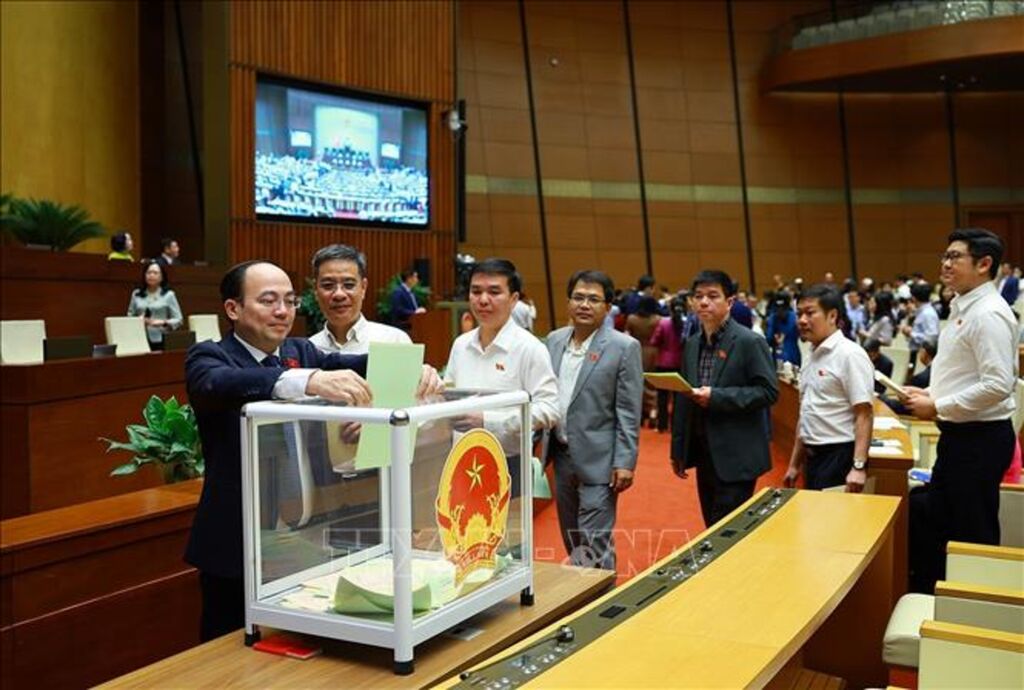 Quốc hội thảo luận và biểu quyết thông qua Nghị quyết về cơ cấu số lượng thành viên Chính phủ bằng hệ thống biểu quyết điện tử.