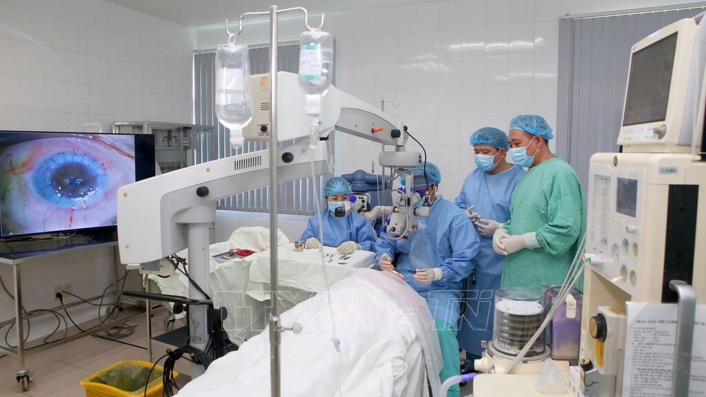 Cùng đợt, hai bệnh nhân loạn dưỡng giác mạc, trong đó một người đã mù hoàn toàn, được ghép giác mạc. Mỗi ca kéo dài khoảng một giờ, các bác sĩ loại bỏ giác mạc bệnh lý, thay thế bằng giác mạc hiến và khâu lại bằng chỉ vi phẫu. Sau phẫu thuật, thị lực các bệnh nhân dần phục hồi, đang được theo dõi và dùng thuốc chống thải ghép.