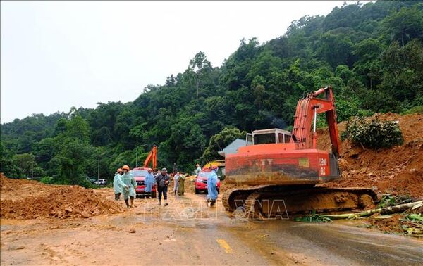 Đợt mưa lớn đã gây thiệt hại kết cấu hạ tầng giao thông đường bộ trên tuyến Quốc lộ 4H đoạn Pắc Ma đi huyện Mường Nhé, tỉnh Điện Biên.
