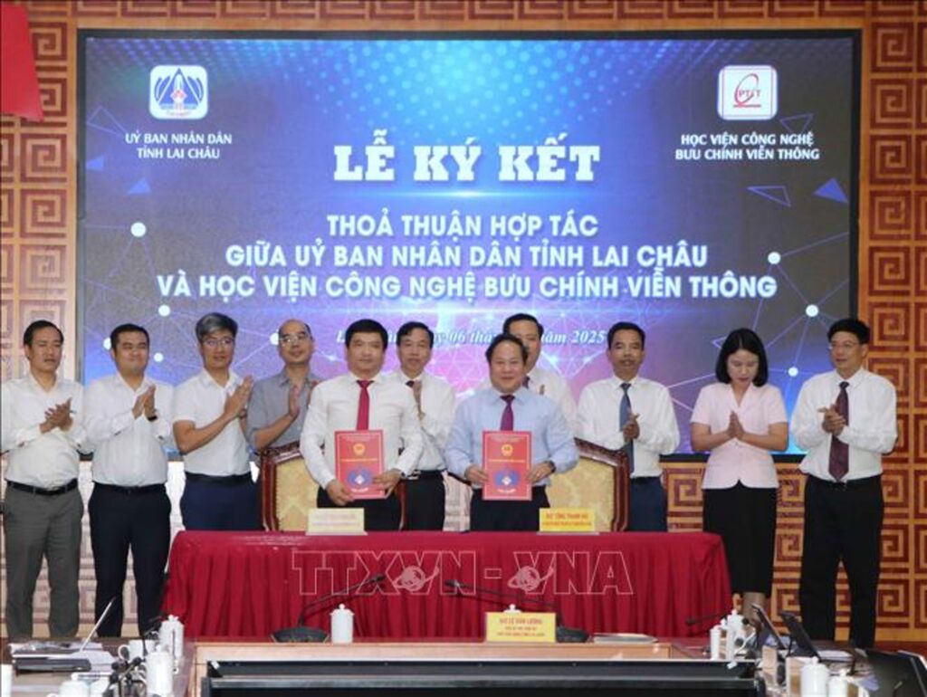 Nhằm tiếp tục đẩy mạnh công tác nghiên cứu, ứng dụng khoa học, công nghệ, đổi mới sáng tạo và chuyển đổi số, đào tạo, bồi dưỡng nâng cao chất lượng nguồn nhân lực của tỉnh Lai Châu giai đoạn 2025 – 2030, ngày 6/6, UBND tỉnh Lai Châu và Học viện Công nghệ Bưu chính Viễn thông đã ký kết thỏa thuận hợp tác.