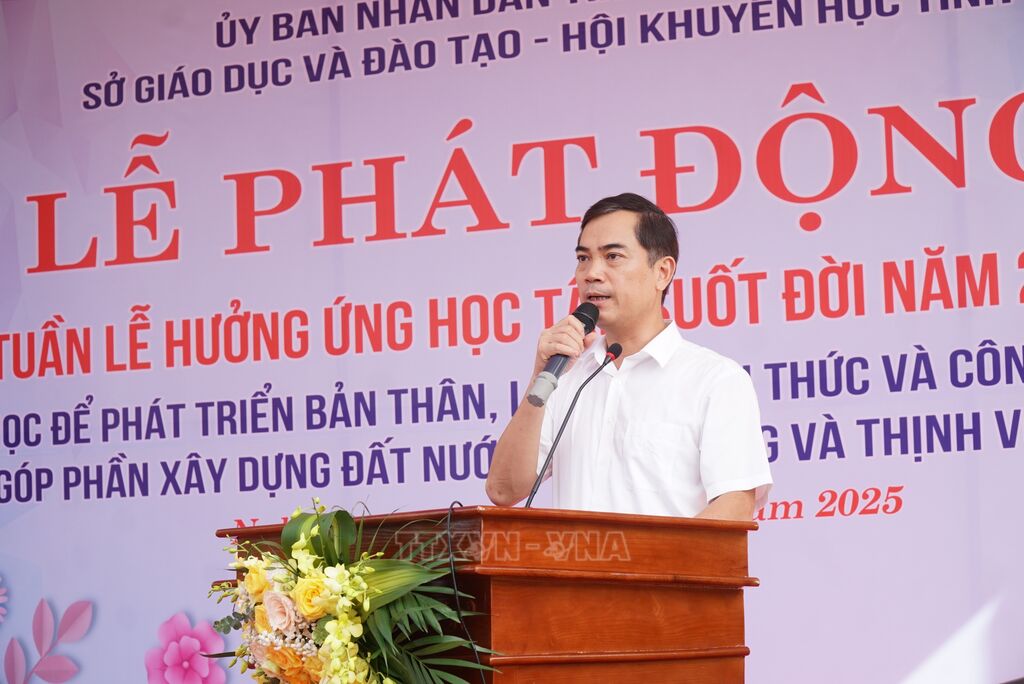 Để hiện thực hóa những mục tiêu trên, tại Lễ phát động, lãnh đạo Sở Giáo dục và Đào tạo đề nghị các cấp ủy, chính quyền, đoàn thể tiếp tục quan tâm, đồng hành, dành nhiều nguồn lực hơn nữa cho việc xây dựng xã hội học tập, tạo điều kiện để mọi công dân, dù ở lứa tuổi nào, hoàn cảnh nào, cũng được tiếp cận với tri thức và công nghệ mới. Các cơ sở giáo dục, thư viện, trung tâm học tập cộng đồng cần phát huy tính sáng tạo, tổ chức những hoạt động thiết thực, khơi dậy văn hóa đọc, văn hóa học tập, để mỗi trường học trở thành “ngôi nhà tri thức”, mỗi làng quê trở thành “ngôi làng học tập”. Mỗi cán bộ, công chức, viên chức, mỗi người dân nêu cao tinh thần tự học, lan tỏa tri thức, góp phần hình thành một cộng đồng cùng học tập, cùng tiến bộ. Học sinh, sinh viên nuôi dưỡng khát vọng, hun đúc ý chí, không ngừng nghiên cứu, sáng tạo, khởi nghiệp, để trở thành những công dân toàn cầu, là lực lượng tiên phong đưa quê hương, đất nước vươn tầm./.