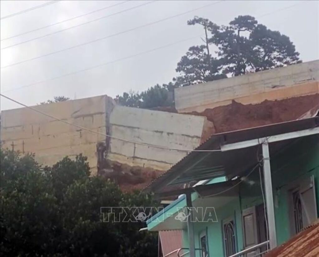 TTXVN - Vào khoảng 17 giờ ngày 1/7, bờ taluy bằng bê tông tại hẻm 36, đường Hoàng Hoa Thám, phường 10, thành phố Đà Lạt (Lâm Đồng) đã được lực lượng chức năng chủ động đẩy sập đổ xuống phía dưới. Đây là khu vực đã xảy ra vụ sạt lở kinh hoàng làm 2 người tử vong, 5 người bị thương ngày 29/6 vừa qua.
