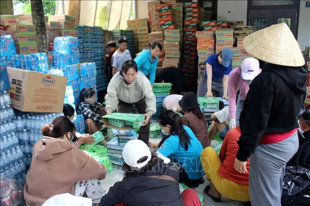 Ba ngày qua, nhà chị Trần Thị Thu Hà, thôn Láng Gòn 1, xã Hàm Tân (tỉnh Lâm Đồng) luôn tấp nập người đến tham gia phụ giúp gói bánh tét để kịp thời ủng hộ người dân bị ảnh hưởng do lũ lụt. Trẻ em thì lau lá chuối, cột dây; phụ nữ thì vo nếp, đãi đậu, bánh; đàn ông, thanh niên thì vác củi, nhóm bếp, nấu bánh. Mỗi người một việc, không khí gói bánh rất khẩn trương. Dù vất vả, nhưng với tấm lòng hướng về đồng bào bị thiệt hại bởi bão lũ, ai ai cũng hăng hái làm tốt nhất phần việc của mình.