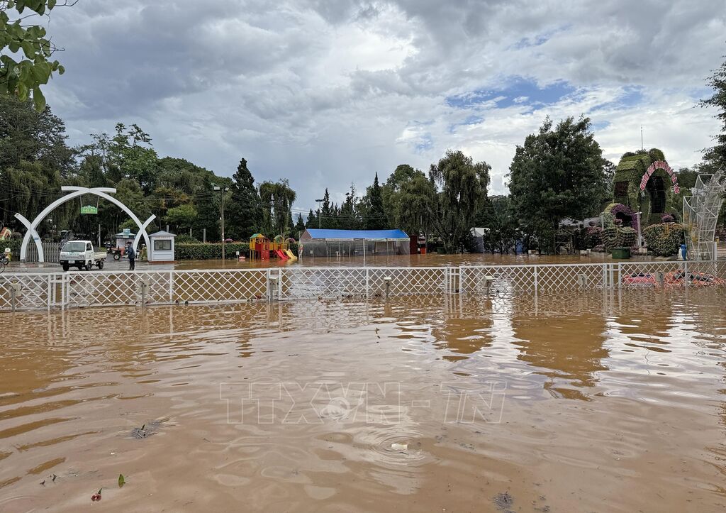 Đặc biệt, tại khu vực Vườn hoa thành phố Đà Lạt, nước ở thượng lưu đổ về hồ chứa bên trong đã dâng ngập, chảy tràn ra đường và các khu trưng bày hoa. Nước ngập từ vườn hoa cũng chảy tràn như thác ra đường Trần Quốc Toản (đoạn trước cổng vườn hoa) khiến các phương tiện di chuyển khó khăn. Một người điều khiển xe máy bị té ngã và được lực lượng dân quân tự vệ hỗ trợ di chuyển qua đoạn đường ngập. Đồng thời, lực lượng dân quân cũng hỗ trợ đơn vị quản lý vườn hoa thu gom, di dời các chậu hoa bị nước cuốn trôi.