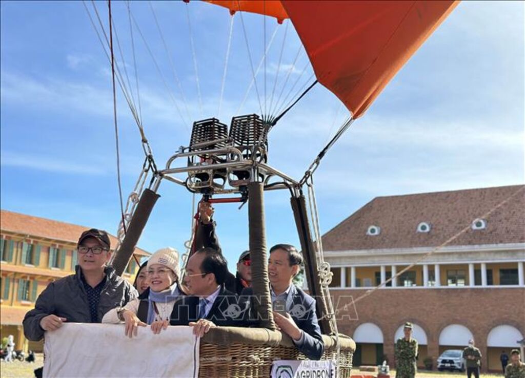 Sau lễ khai mạc sáng 28/12, đông đảo người dân và du khách đã được trải nghiệm dịch vụ bay khinh khí cầu ngắm thành phố Đà Lạt trên cao (Ảnh: Nguyễn Dũng/TTXVN)