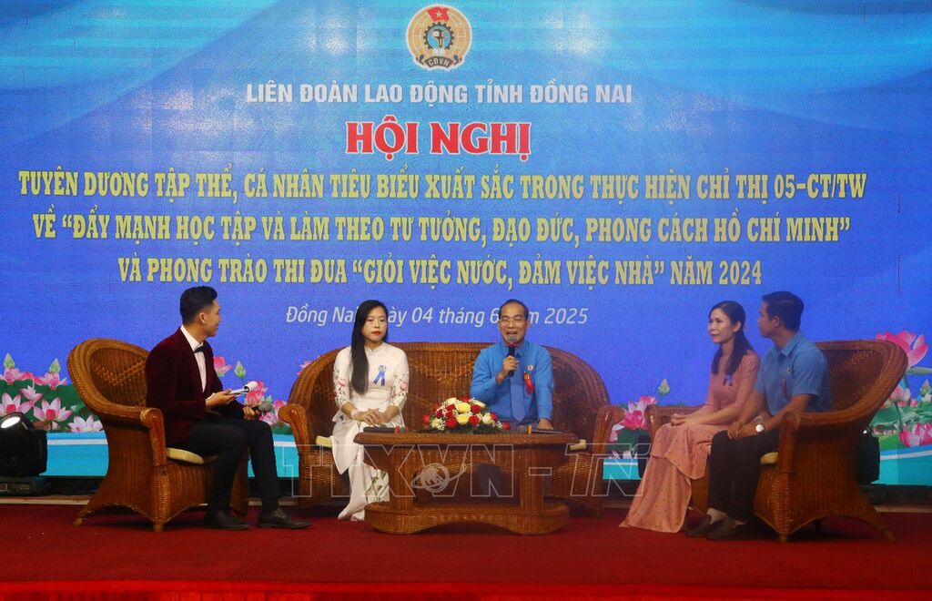 Ngày 4/6, Liên đoàn Lao động tỉnh Đồng Nai tổ chức hội nghị tuyên dương tập thể, cá nhân tiêu biểu xuất sắc trong thực hiện Chỉ thị 05-CT/TW về “Đẩy mạnh học tập và làm theo tư tưởng, đạo đức, phong cách Hồ Chí Minh” và phong trào thi đua “Giỏi việc nước, đảm việc nhà” năm 2025.