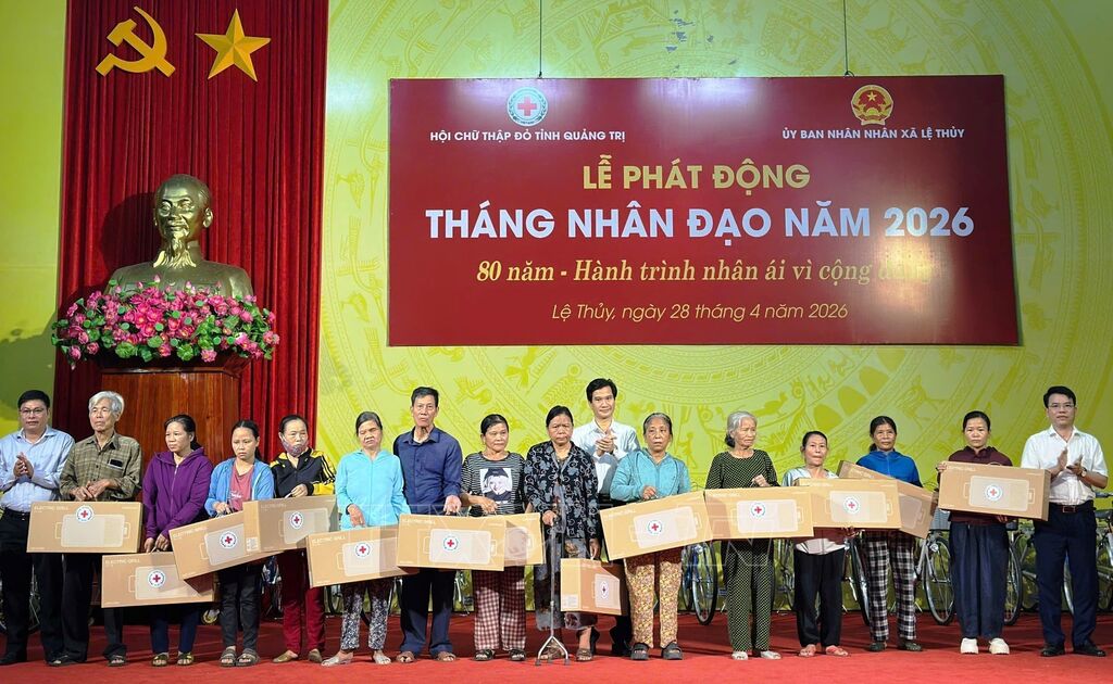 Ngày 28/4, tại Trung tâm Văn hóa xã Lệ Thủy, Hội Chữ thập đỏ tỉnh Quảng Trị phối hợp với Ủy ban nhân dân xã Lệ Thủy tổ chức Lễ phát động Tháng Nhân đạo năm 2026 với chủ đề “80 năm - Hành trình nhân ái vì cộng đồng”.