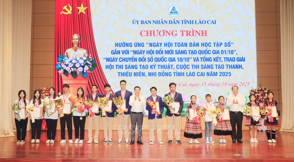 Chiều 15/10, UBND tỉnh Lào Cai tổ chức Chương trình hưởng ứng “Ngày Hội toàn dân học tập số”, “Ngày Hội đổi mới sáng tạo Quốc gia 1/10”, “Ngày Chuyển đổi số Quốc gia 10/10” và tổng kết, trao giải Cuộc thi Sáng tạo thanh, thiếu niên, nhi đồng, Hội thi Sáng tạo kỹ thuật tỉnh Lào Cai năm 2025.