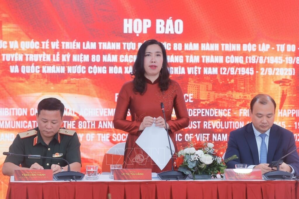 “Trọng tâm các hoạt động kỷ niệm 80 Cách mạng tháng Tám và Quốc khánh 2/9 gồm 17 hoạt động, trong đó có các hội thảo và tọa đàm khoa học; gặp mặt, tri ân các thế hệ lão thành cách mạng, các Bà mẹ Việt Nam Anh hùng, người có công, gia đình chính sách... Bên cạnh đó, còn có các hoạt động tôn vinh, thể hiện tấm lòng, sự trân trọng, tri ân đối với bạn bè quốc tế…”, đó là chia sẻ của Thứ trưởng Bộ Ngoại giao Lê Thị Thu Hằng tại họp báo Triển lãm thành tựu đất nước 80 năm hành trình Độc lập - Tự do - Hạnh phúc và Lễ kỷ niệm 80 năm Cách mạng tháng Tám thành công (19/8/1945-19/8/2025), Quốc khánh (2/9/1945-2/9/2025).
