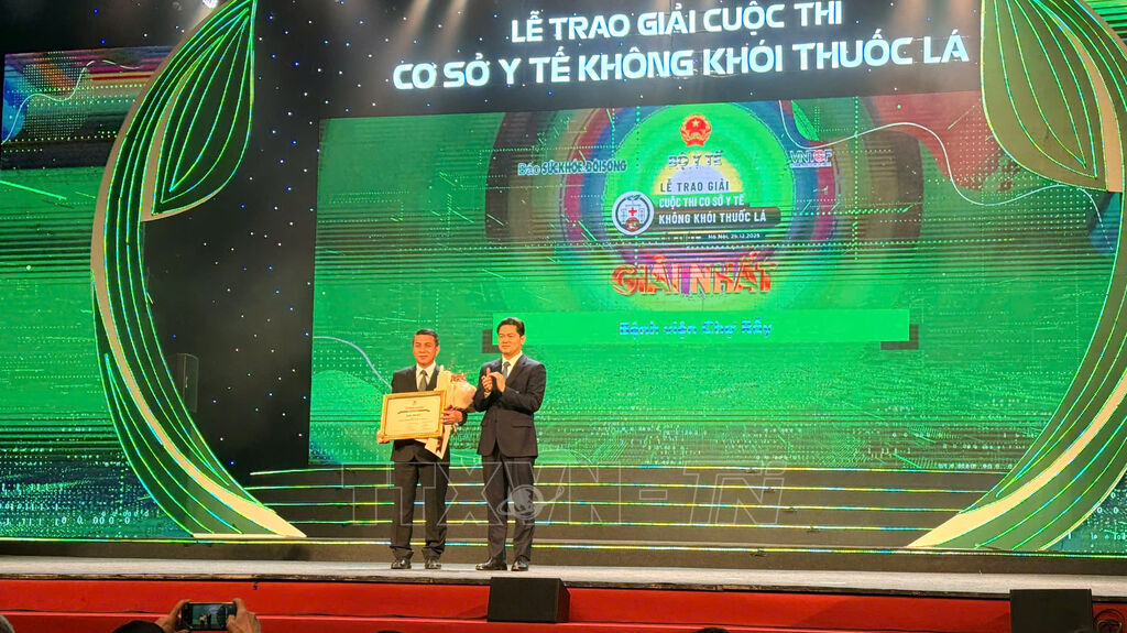 Sáng 25/12, tại Hà Nội, Báo Sức khỏe và Đời sống phối hợp với Quỹ Phòng, chống tác hại của thuốc lá (Bộ Y tế) tổ chức Lễ trao giải cuộc thi "Cơ sở y tế không khói thuốc lá" lần thứ I. Cuộc thi nhằm tôn vinh nỗ lực của các đơn vị trong việc xây dựng môi trường khám chữa bệnh an toàn, không khói thuốc, bảo vệ sức khỏe người bệnh; đồng thời góp phần lan tỏa thông điệp: Mỗi một cá nhân khi đến khám bệnh trong một môi trường y tế sạch sẽ, không khói thuốc sẽ trở thành một "đại sứ" mang ý thức phòng chống tác hại thuốc lá về với gia đình và cộng đồng.