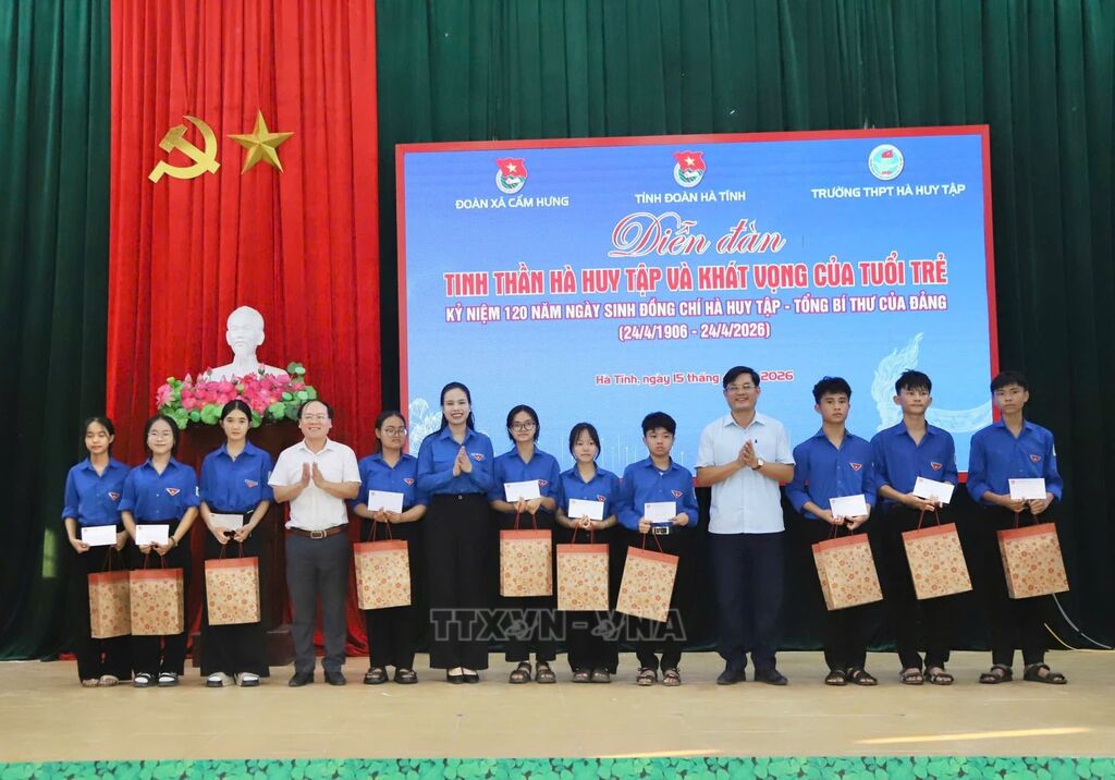 Hướng tới Kỷ niệm 120 năm Ngày sinh Tổng Bí thư Hà Huy Tập (24/4/1906 - 24/4/2026), chiều 15/4, Ban Thường vụ Tỉnh đoàn Hà Tĩnh phối hợp Đoàn xã Cẩm Hưng và Trường Trung học phổ thông Hà Huy Tập tổ chức diễn đàn “Tinh thần Hà Huy Tập và khát vọng của tuổi trẻ".