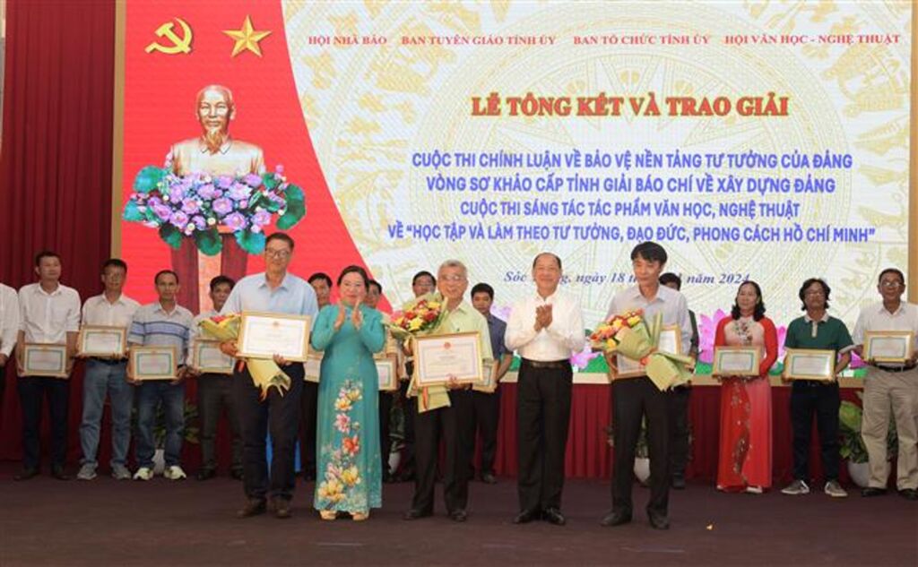 Ngày 18/11, Ban Tuyên giáo Tỉnh ủy Sóc Trăng phối hợp với Ban Tổ chức Tỉnh ủy, Hội Nhà báo Việt Nam tỉnh tổ chức tổng kết và trao giải Cuộc thi chính luận về bảo vệ nền tảng tư tưởng của Đảng, Cuộc thi sáng tác tác phẩm văn học, nghệ thuật về “Học tập và làm theo tư tưởng, đạo đức, phong cách Hồ Chí Minh” và vòng sơ khảo Giải Báo chí toàn quốc về xây dựng Đảng (Giải Búa liềm vàng) lần thứ IX - năm 2024.