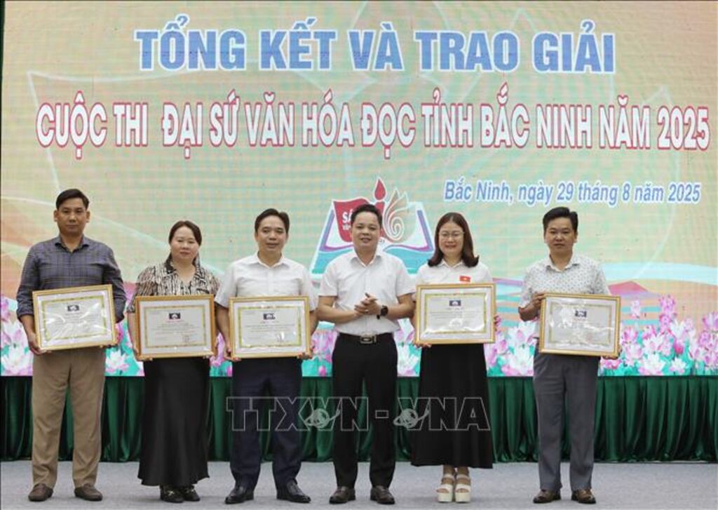 Ngày 29/8, tại Bắc Ninh, Sở Văn hóa, Thể thao và Du lịch phối hợp với Sở Giáo dục và Đào tạo tổng kết và trao giải Cuộc thi Đại sứ Văn hóa đọc tỉnh Bắc Ninh năm 2025. Cuộc thi thu hút gần 145 nghìn bài dự thi của 315 trường học tại tỉnh, góp phần lan tỏa sâu rộng văn hóa đọc trong thế hệ trẻ.
