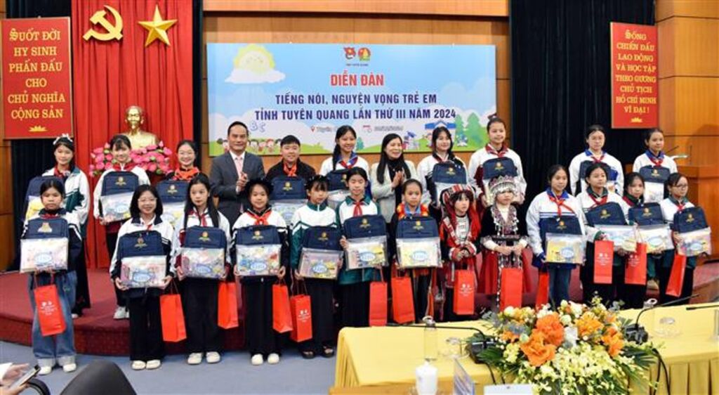 Dịp này, Tỉnh đoàn và Hội đồng Đội tỉnh Tuyên Quang trao 100 suất quà cho thiếu nhi tiêu biểu tham dự diễn đàn./.