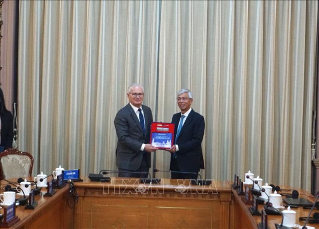 TTXVN - Chiều 8/12, Phó Chủ tịch Ủy ban nhân dân Thành phố Hồ Chí Minh Võ Văn Hoan tiếp ông John Neuffer, Chủ tịch kiêm Giám đốc điều hành Hiệp hội Công nghiệp bán dẫn Hoa Kỳ (SIA), đang có chuyến thăm và làm việc tại Việt Nam.