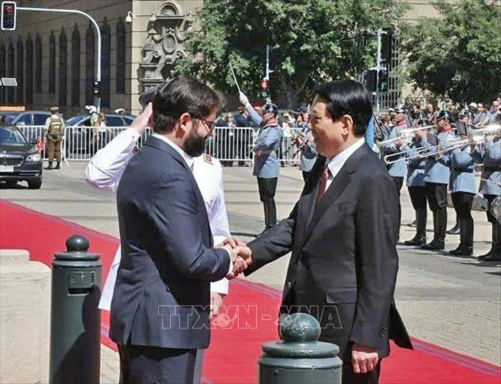 Trước đó, Chủ tịch nước Lương Cường và đoàn đại biểu cấp cao Việt Nam đã tới đặt vòng hoa tại Đài tưởng niệm Anh hùng dân tộc Bernardo O’Higgins, nhà cách mạng đã lãnh đạo cuộc đấu tranh giành độc lập cho Chile từ chế độ thực dân hồi đầu thế kỷ 19./.